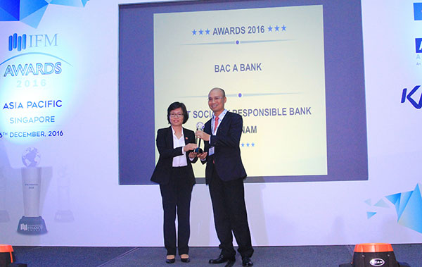 Locally-owned lender BAC A BANK has just won a high-profile award of “The leading bank in social responsibility in Vietnam in 2016” organised by Thomson Reuters’ International Finance Magazine.