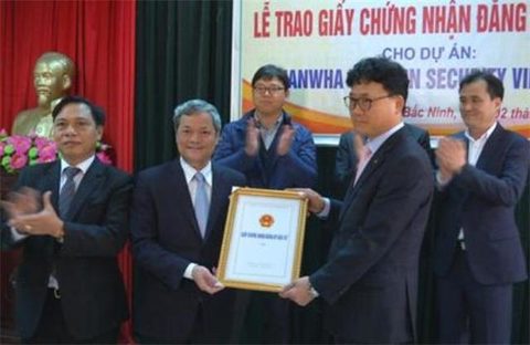 The People’s Committee of the northern Bac Ninh Province granted an investment certificate to the South Korean firm Hanwha Techwin Security Company.-Photo bacninhtv.vn