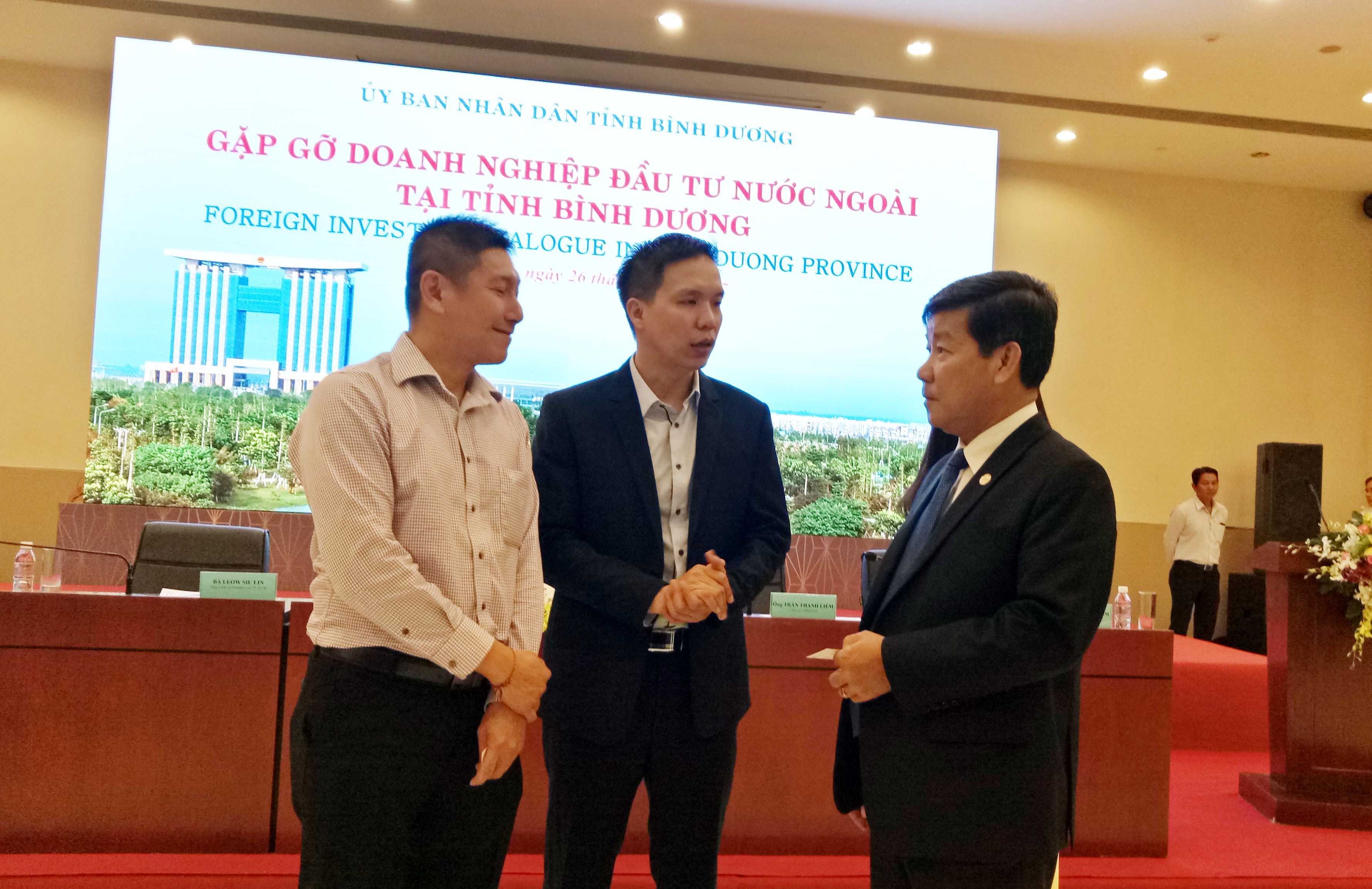 | Tran Thanh Liem, Chairman of the Binh Duong People's Committe talked with representatives of foreign investors (Photo: Hong Son) |