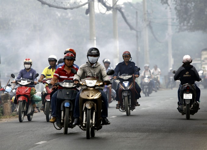 Citizens of HCM City always wear masks when participating in traffic to avoid enhaling dust. - VNA/VNS Photo Hoàng Hải