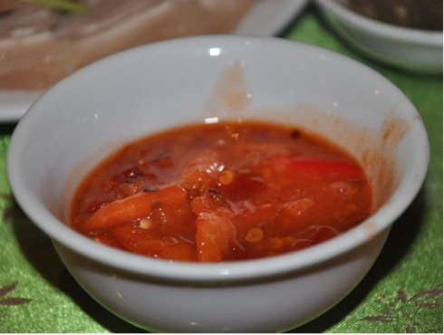 To savour the flavour of Sour Shrimp, you have to eat this dish with two other food: sliced boiled pork sides and fresh veggies (green bananas, star fruits, cinnamons, and chilies).