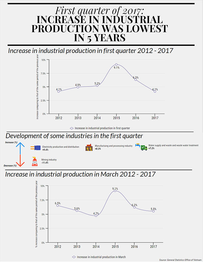 The following infographic illustrated some general points in industrial production in the first quarter of 2017.