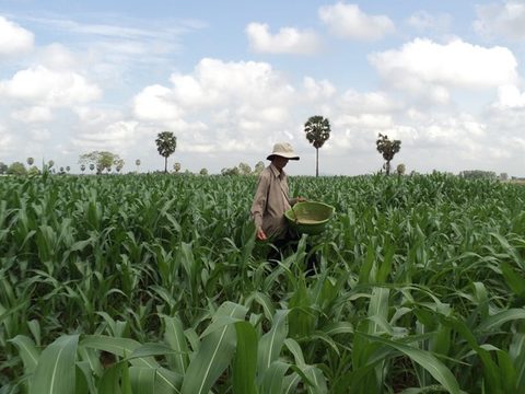 A farmer of Kien Giang Province’s Giang Thanh District is taking care of his corn farm. The southern province will need US$3.5 billion to restructure the agricultural sector. - Photo VGP