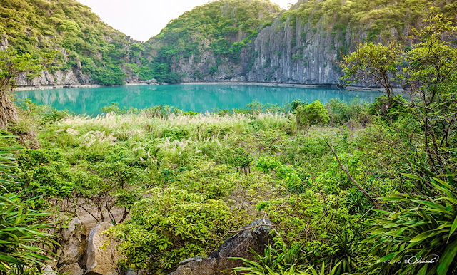 Hồ trên đảo Mắt Rồng nhìn từ trên cao - Ảnh: Yên Chi