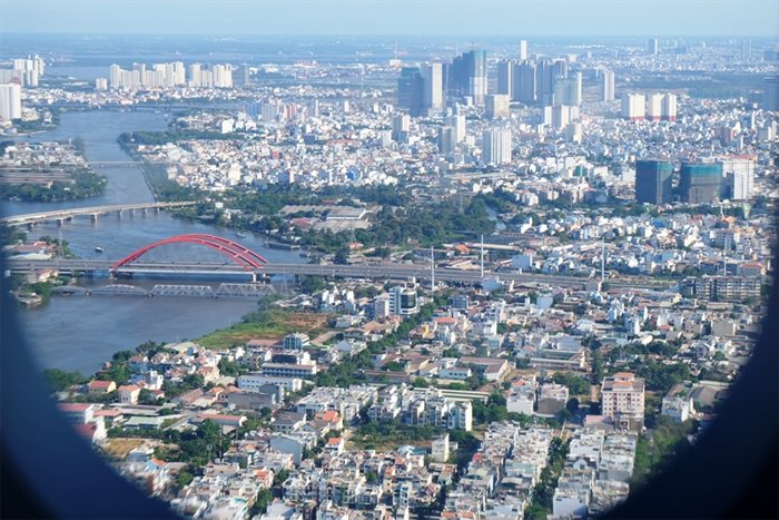 TP.HCM nhìn từ trên máy báy, thành phố đang tăng trưởng nhanh nhất trong cả nước. Ảnh: Hồng Phúc