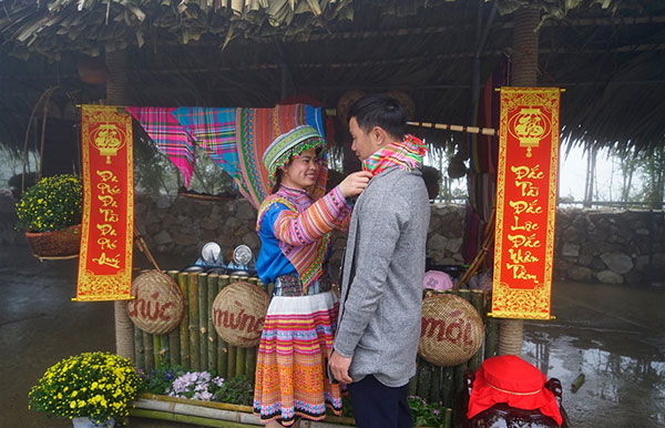 At the culture showcase visitors can join in a lunar New Year market where people sell the specialty food and goods of the region, and traditional games such as “di ca kheo”, “nem con” and “nhay sap.” Visitors will enjoy the sight of colourful dresses and scarves of the people in the middle of the bustling market and among flowers.