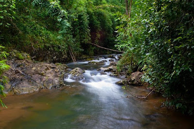 If you choose right, there is brisk seven minutes walk on the tiny trails along the stream before you reach the first storey of the fall. Remember to cling onto the bamboo strings to stay safe.