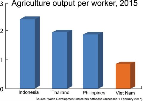 Labour productivity is seen as key factor. The report highlights that agriculture output per worker in Viet Nam is one-third of Indonesia’s and less than half of Thailand’s and the Philippines’.