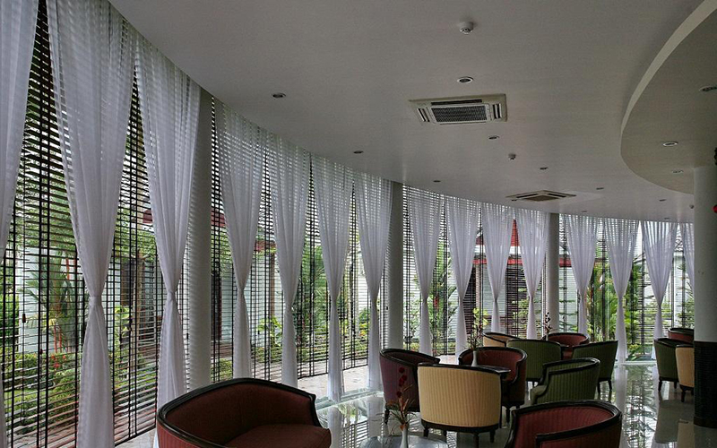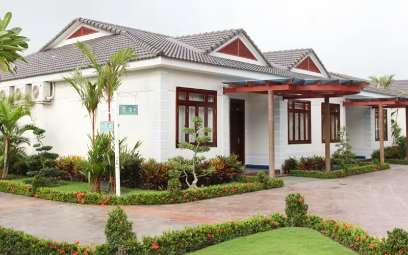 Hệ thống khách sạn cao cấp đạt tiêu chuẩn 4 sao được trang bị đầy đủ các tiện nghi sang trọng và hiện đại đáp ứng được tất cả các nhu cầu nghỉ ngơi, giải trí và chăm sóc các nhân của du khách. Xung quanh phòng là những khu vườn kiểng, vườn hoa thảm cỏ xanh mát, bờ sông lông gió cùng với tiếng chim kêu ríu rít.. tạo cho du khách cảm giác luôn được hòa mình với thiên nhiên