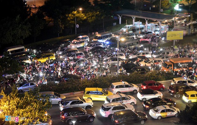 Khu vực đưa đón trước ga quốc nội lẫn quốc tế dày đặc xe cộ ra vào. Lãnh đạo TP.HCM cũng vừa đề nghị Cảng vụ hàng không miền Nam điều chỉnh lại thời gian bay của các hãng hàng không để giảm ùn tắc giao thông trong giờ cao điểm.