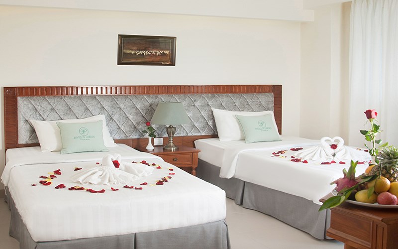 Khách sạn Pavillon Garden gồm 12 tầng với 34 phòng được thiết kế theo phong cách Châu Âu hiện đại, tinh tế. Đặc biêt, tất cả các phòng ở đây đều có ban công riêng thoáng mát và trong lành. Trong phòng được trang bị đầy đủ tất cả các trang thiệt bị hiện đại nhất như Tivi màn hình phẳng, máy điều hòa, tủ lạnh, tủ treo đồ, bàn làm việc, bàn trang điểm, Két sắt,...