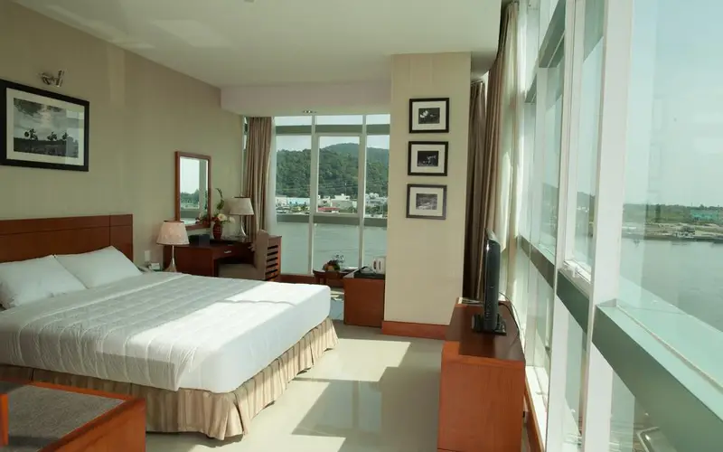 Khách sạn River Hà Tiên với kiến trúc độc đáo của nó, trong hình dạng của một chiếc thuyền thủy tinh, với những đường cong tròn là một kỳ công kỹ thuật. Sự quyến rũ và lãng mạn là những từ thường được trích dẫn bởi những khách hàng của chúng tôi ở tại khách sạn River.