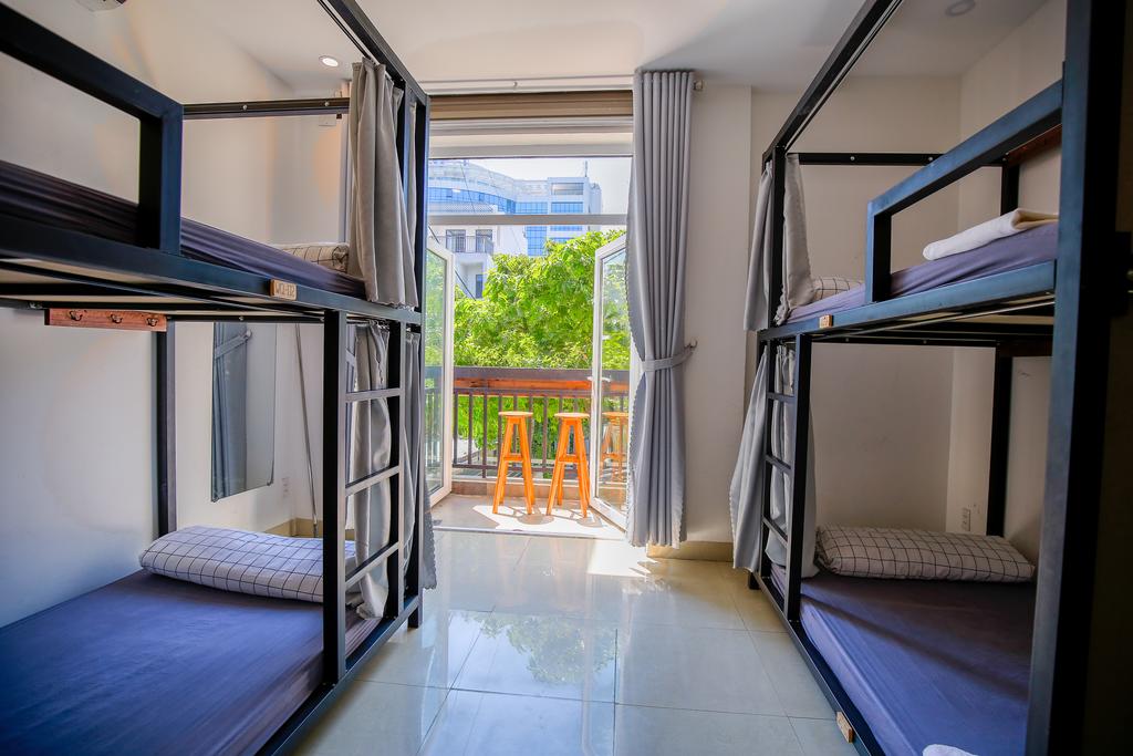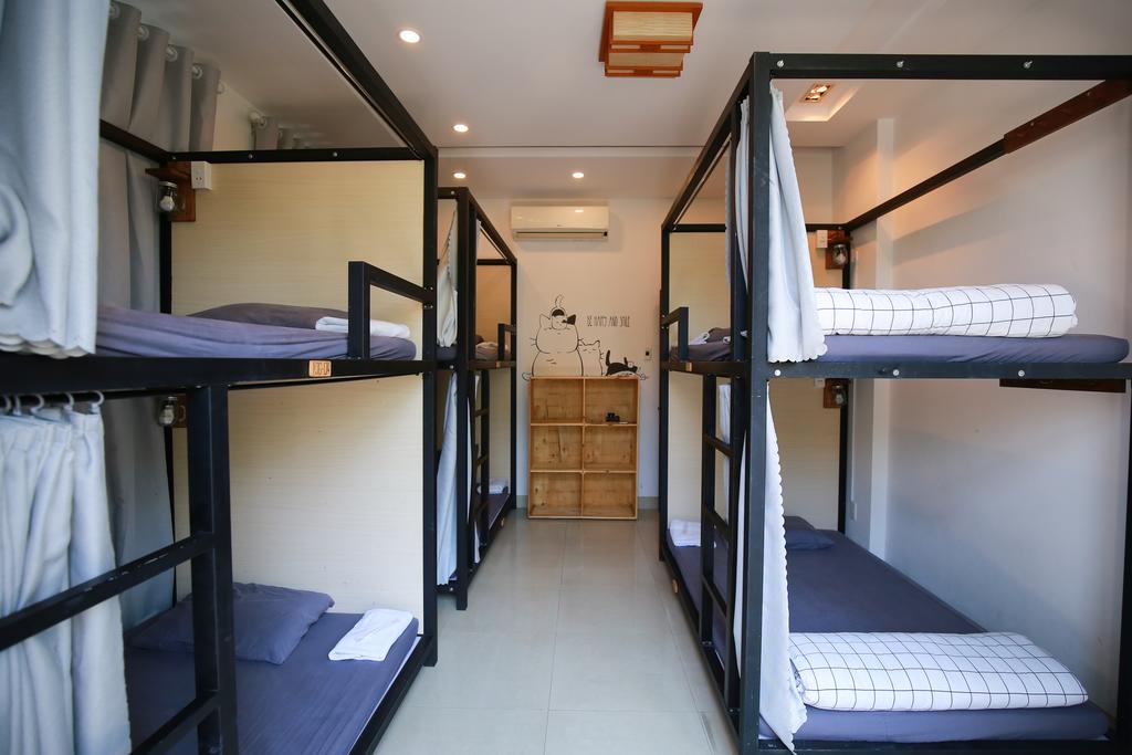 Căn phòng nhà Little Flower Đà Nẵng dành cho nhóm bạn, mang lại cảm giác hồi tưởng về kí túc xá thời đi học. Tuy là giường tầng những kích thước rộng tận 1m2 rất thoải mái cho một người nằm.