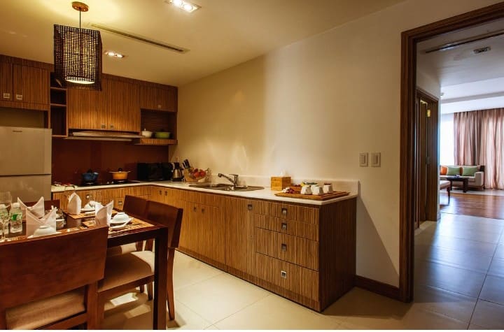 - Đối với các hạng phòng/căn hộ/biệt thự có khu vực bếp, du khách có thể nấu ăn và được trang bị dụng cụ cơ bản theo số lượng khách đặt phòng (nồi, chén, đũa, muỗng...). Tuy nhiên, để đảm bảo an toàn và được phục vụ tốt nhất, khách hàng lưu ý liên hệ Lễ tân trước khi muốn sử dụng bếp để được hướng dẫn.