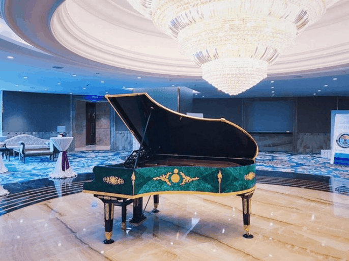 Tại sảnh còn được bố trí một bộ sofa thuộc dòng kiệt tác của thương hiệu nổi tiếng Colombostile. Lớp vỏ được bọc bằng da đà điểu màu tím đỏ quý tộc với các đường viền mạm vàng. Đây là chiếc sofa độc nhất vô nhị trên thế giới.