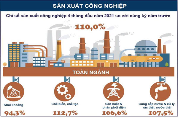 Sản xuất công nghiệp 4 tháng đầu năm tăng 10%