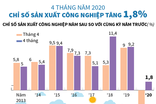 [Infographic] Chỉ số sản xuất công nghiệp 4 tháng năm 2020 tăng 1,8%