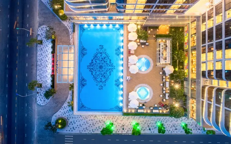 *Hồ bơi: Tại tầng 2 của khách sạn có 1 hồ bơi bốn mùa trong nhà và 1 hồ bơi ngoài trời. Hồ bơi ngoài trời có khu vực dành cho trẻ em. Các hồ bơi có độ sâu 1m2 - 1m4 và hoạt động theo mùa, từ tháng 10 đến tháng 01 hoạt động từ 06:00 - 18:00, từ tháng 02 đến tháng 09 hoạt động từ 06 - 19:00.